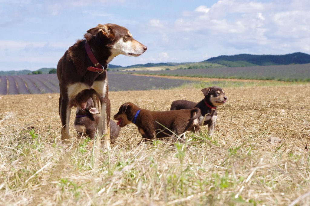 Belle est la femelle de Belle et Puk qui reste avec moi. Des qu’elle est née, une relation particulière s’est nouée entre ce chiot et moi. Elle est incroyable. C’est une petite chienne calme, joueuse et qui aime partir à la découverte de son environnement. Comme son frère Moka, elle montre déjà beaucoup de Will to please